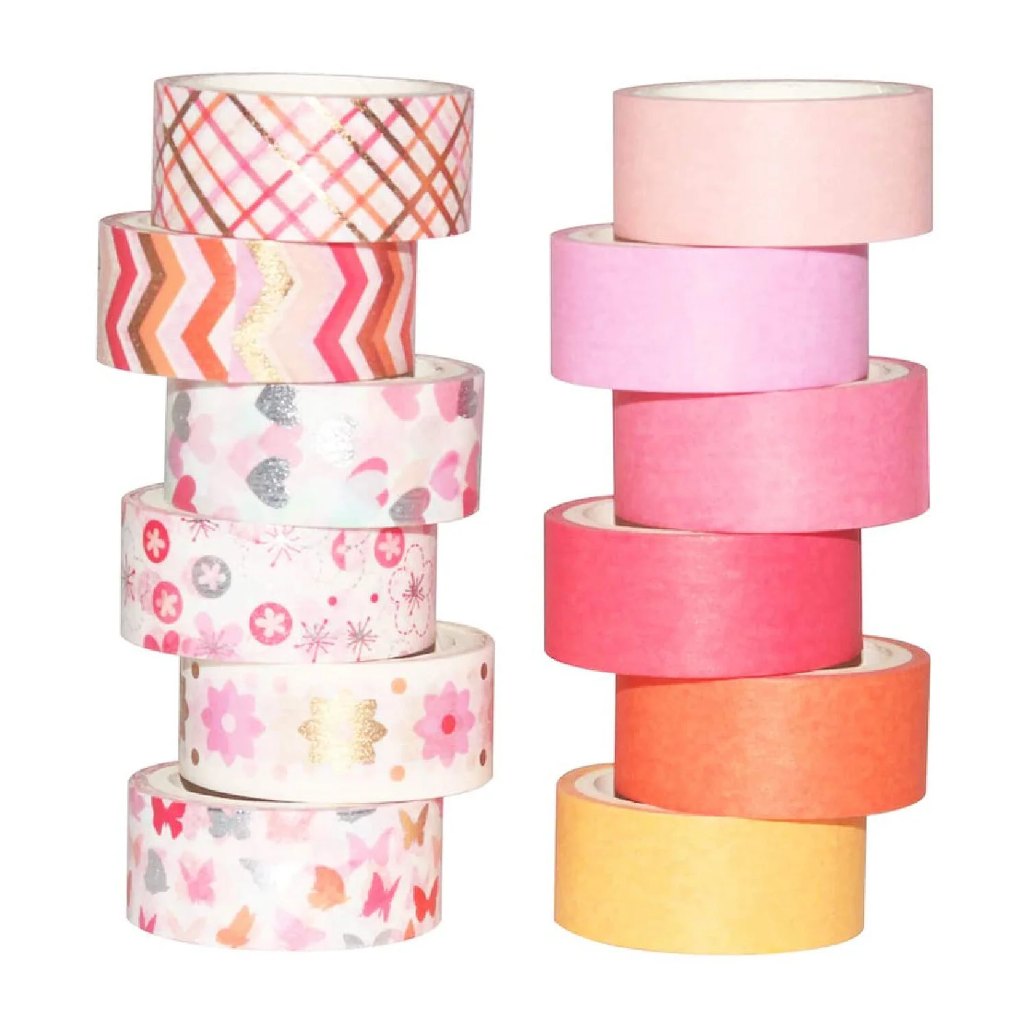 YUBBAEX 12 Rolls Pink Gold Washi Tape Set